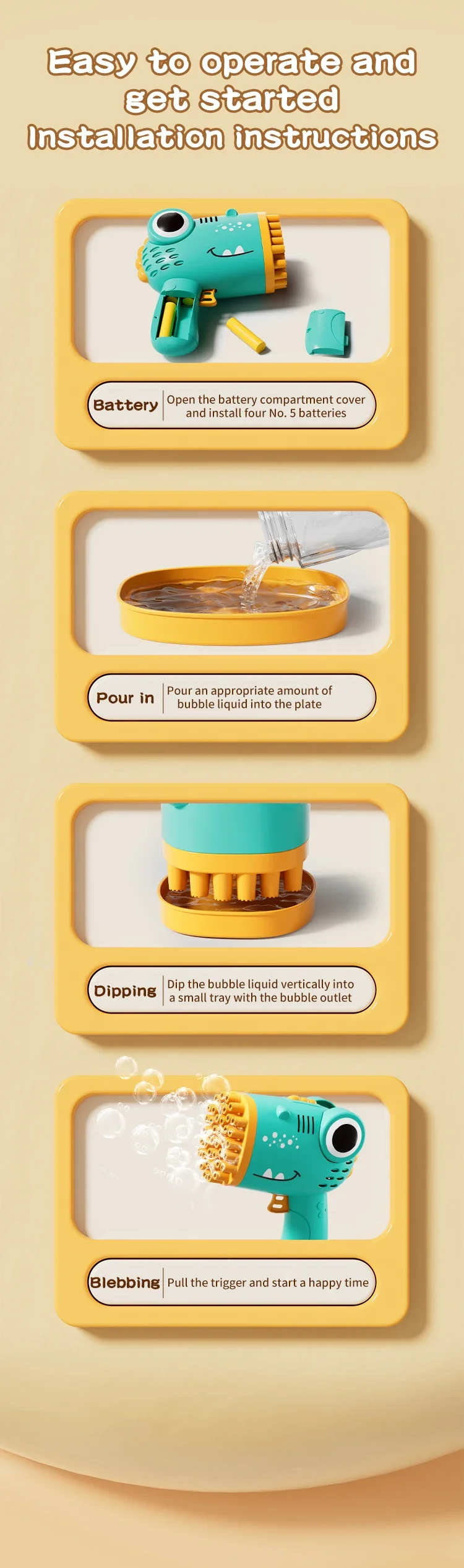 40 Hole Dinosaur Bubble Machine Children's Gift Continuous Bubble Making Wedding Outdoor (Excluding Bubble Liquid and Battery)