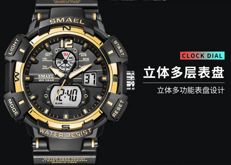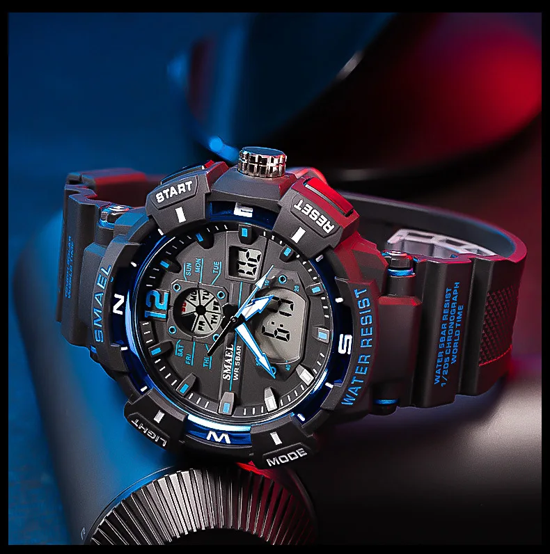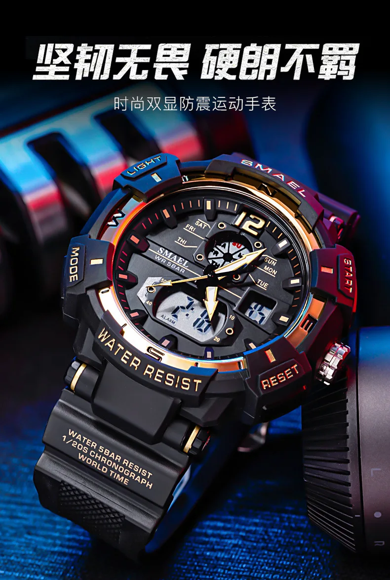 SMAEL Cool Shockproof Electronic Watch Multi-function Waterproof Sports Dual Display Electronic Quartz Watch