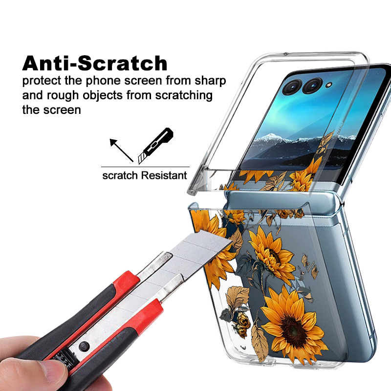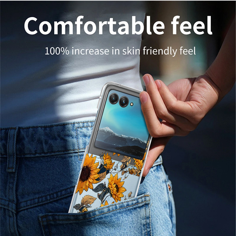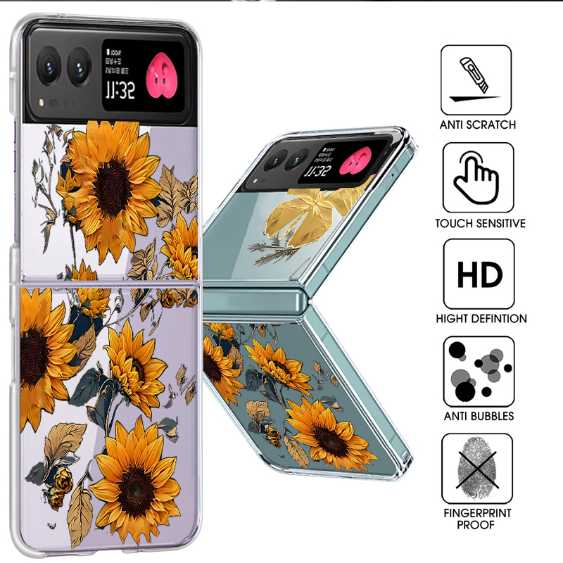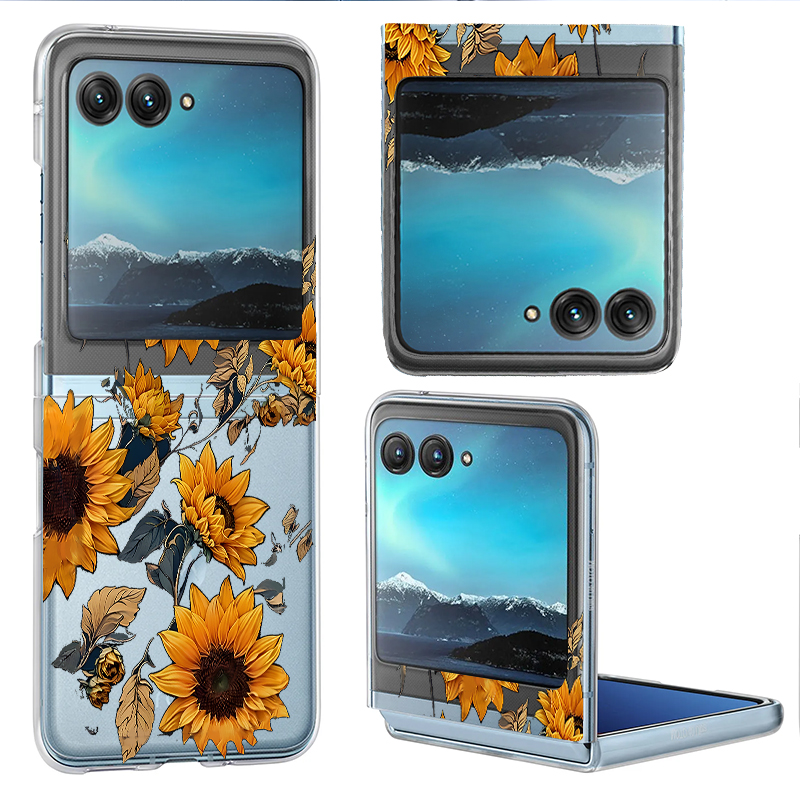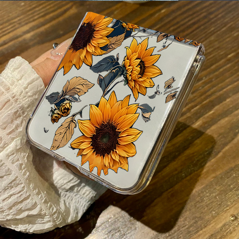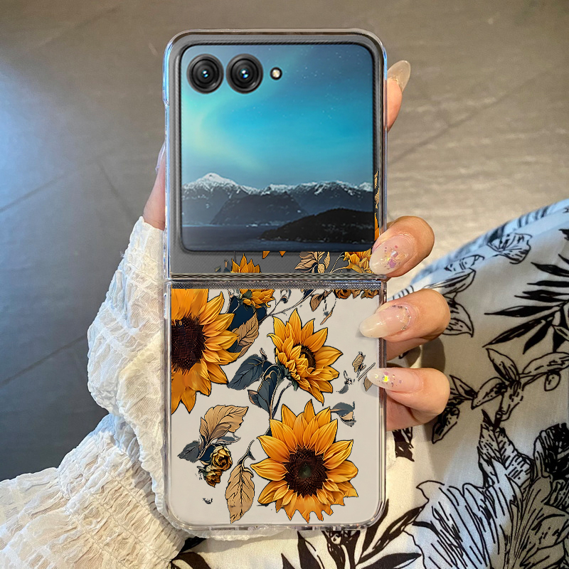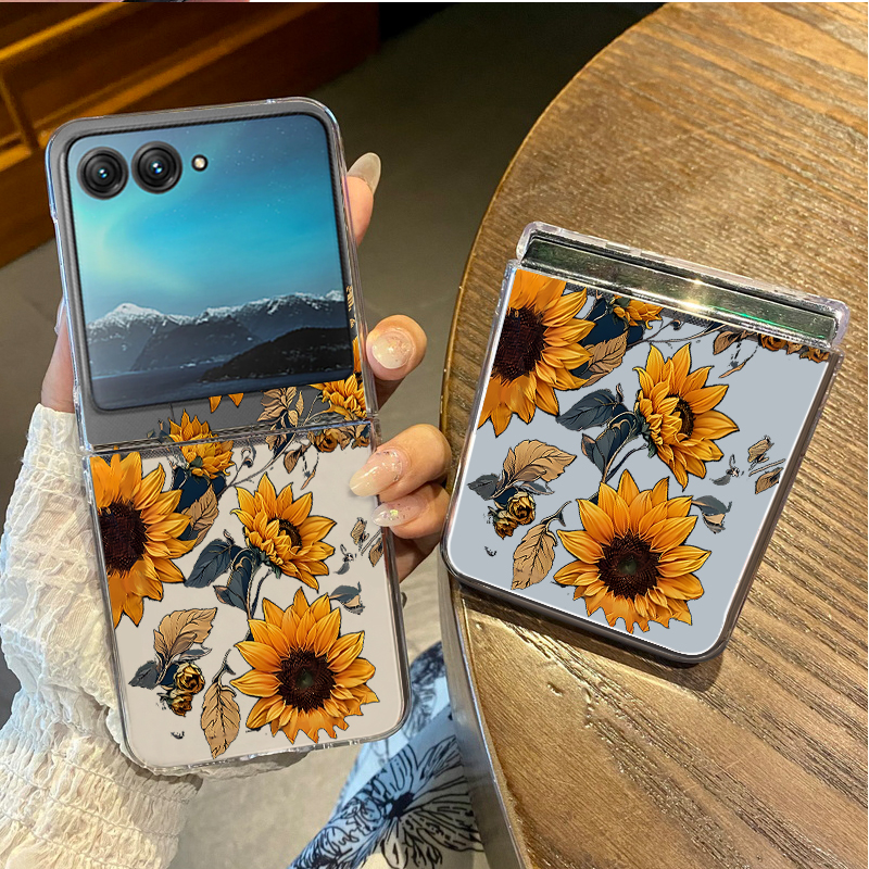 Sunflowers Pattern Clear Phone Case For Motorola Razr 50 40 Ultra Razr40 Razr50 Shockproof Bumper Transparent Folding Hard Cover
